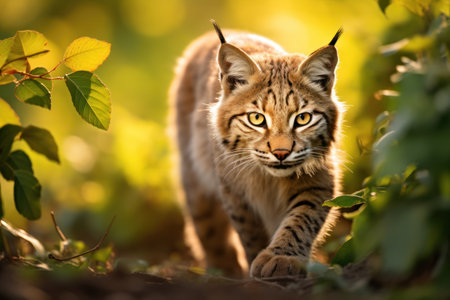Depicting a bobcat looking at the camera in the forest, high quality, high resolution
