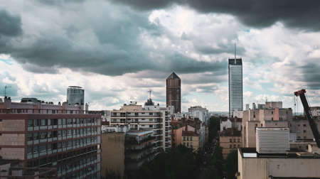 Aerial view of La Part-Dieu district and its skyscrapers, Lyon, France