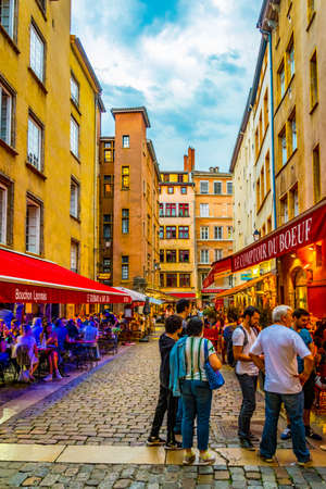 LYON, FRANCE, JULY 22, 2017: People are strolling through the old town of lyon during sunset, France