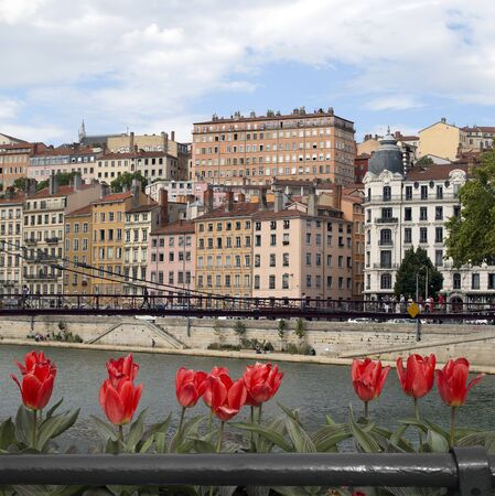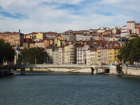 Architecture of Lyon along Saone River river. Lyon, Rhone-Alpes, France.
