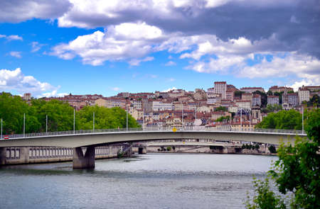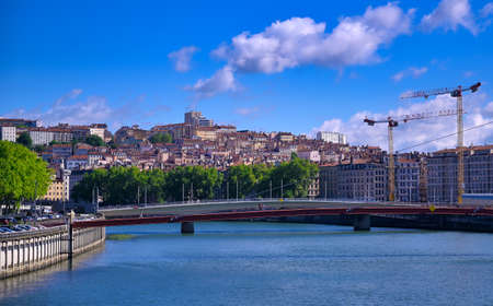 Lyon, France - May 10, 2019. Lyon cityscape from Saone river