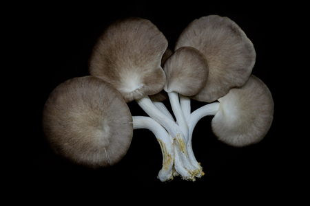 IIndian Oyster Mushrooms isolated on black background, Indian Oyster Mushrooms are popular for cooking.
