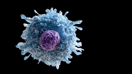 Cancer cell evading immune system on transparent background