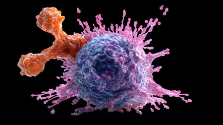 Vibrant immune cells are shown interacting with pathogens in a microscopic environment, illustrating the complex dynamics of the human immune response.