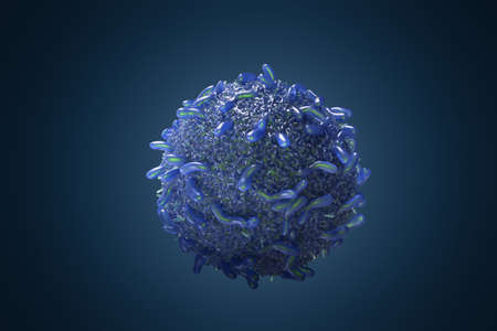 3d rendering blue cancer cell on blue