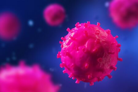 close-up coronavirus type covid-19, h1n1, bird flu or swine flu background. 3d rendering of representation of virus as microbiological microscopic background. Red white gradient color