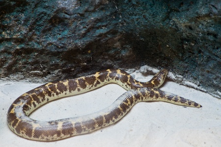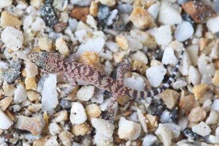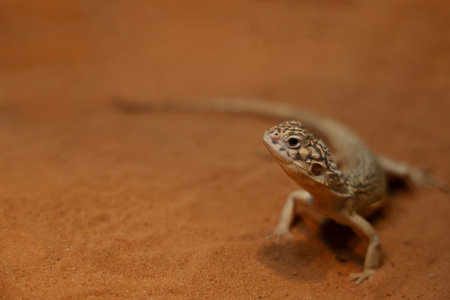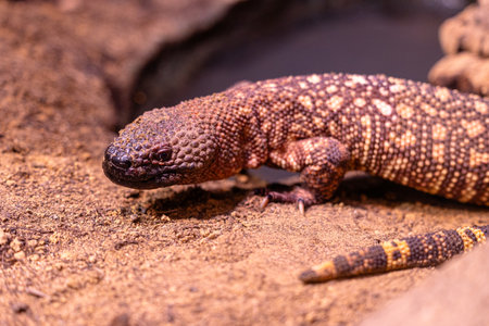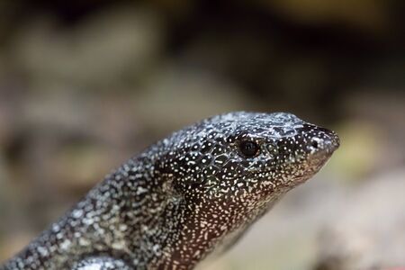 A beautiful, brown lizard living in the terrarium. An exotic scenery in aquazoo in Dusseldorf, Germany.