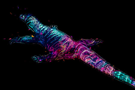 Neon glowing jellyfish isolated on black background. 3d illustration