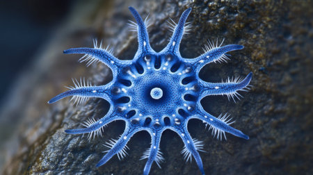 A stunning close-up of a vibrant blue sea creature displaying intricate patterns and textures, showcasing the beauty and diversity of marine life.