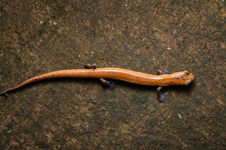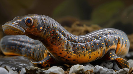 Closeup on the rare and critically endangered Oki salamander, Hynobius okiensis, endemic to Japane