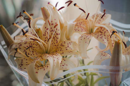 Macro cream lilies. A symbol of relaxation and beauty. Relaxation