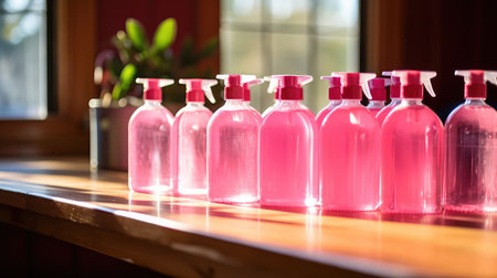 Cleaning products, plastic bottles. Household cleaning, hygiene, and sanitation concept. Isolated or grouped.