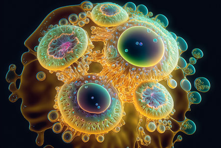 Colorful microorganism cells close up. illustration in high details for medical education and science. ai generative.