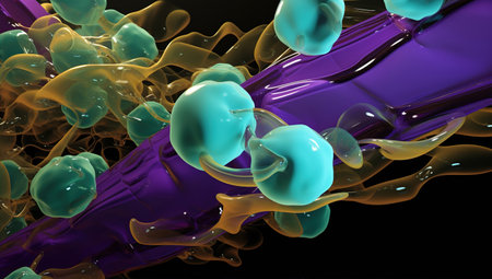 This visually stunning image showcases an intricate molecular structure in vivid colors, representing biological processes at a microscopic level.
