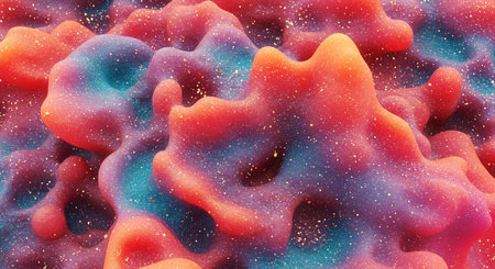 A stunning abstract visual of colorful molecular structures, capturing microscopic interactions and celebrating the intricate beauty of nature through vibrant designs and creative graphics.