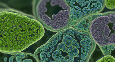 A captivating close-up reveals diverse cellular structures, showing a colorful mix of shapes and sizes. These vivid formations highlight the complexity of microscopic life.