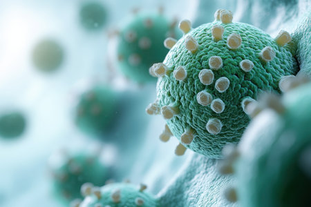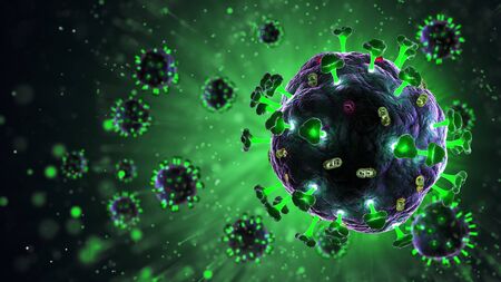 3d render of pathogenic virus organism or bacteria infecting and causing disease. Close up from microscope of coronavirus. 3d rendering