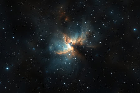 A brilliant nebula radiates colors amidst countless stars in deep space. The beauty of the cosmos captivates viewers.