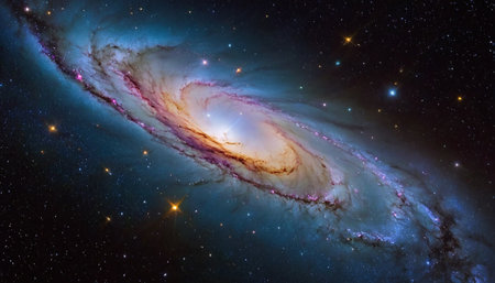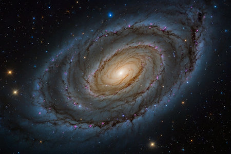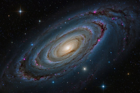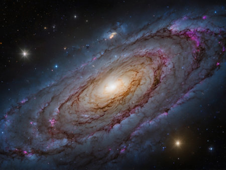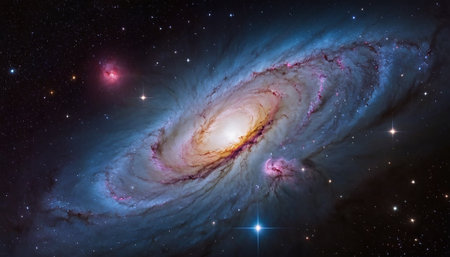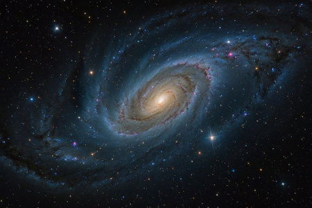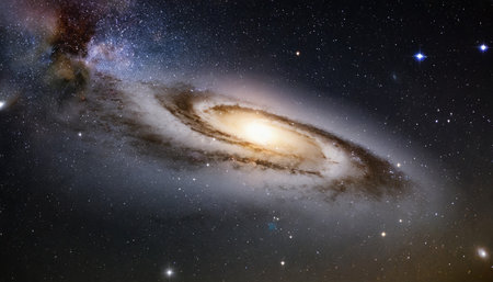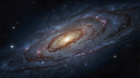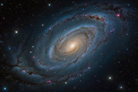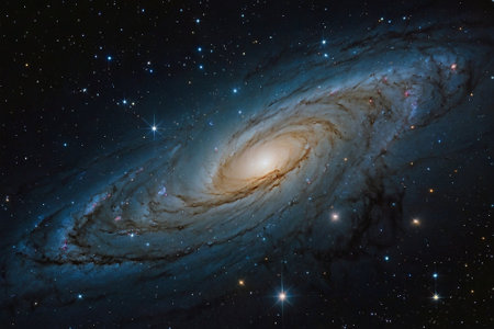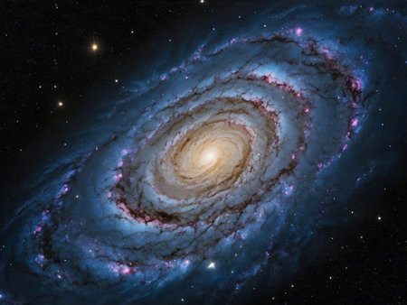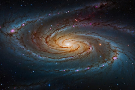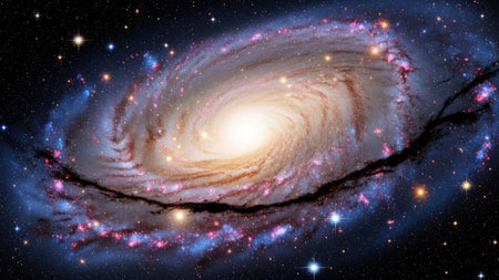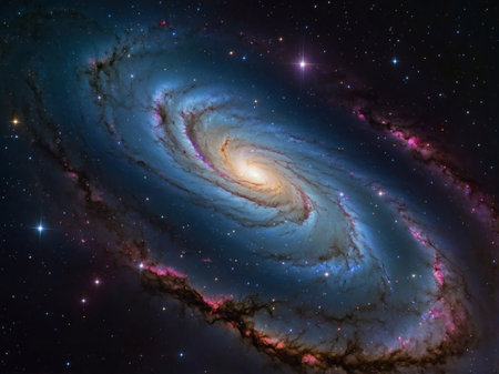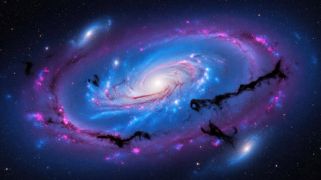 Spiral galaxy illustration with glowing arms and starlit background in high detail