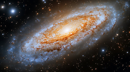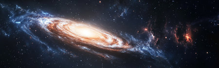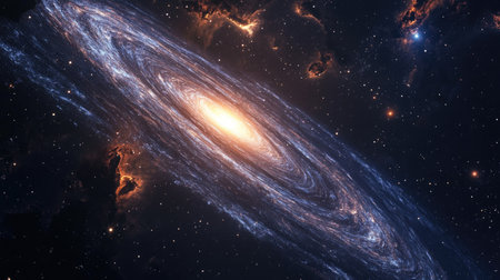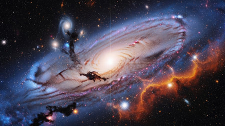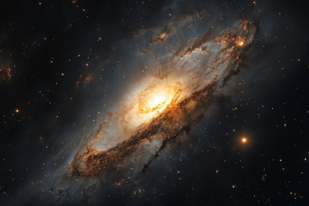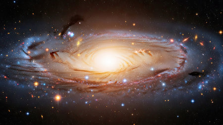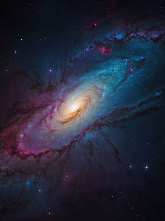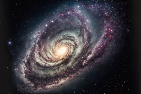 Majestic spiral galaxy with swirling streams of stars, gas, and dust, illuminating the vast expanse of outer space