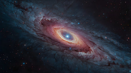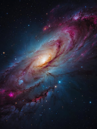 A stunning spiral galaxy with a luminous core surrounded by cosmic dust, capturing the wonders of space and the beauty of the universe in a mesmerizing scene.