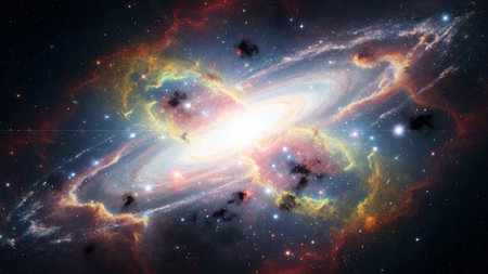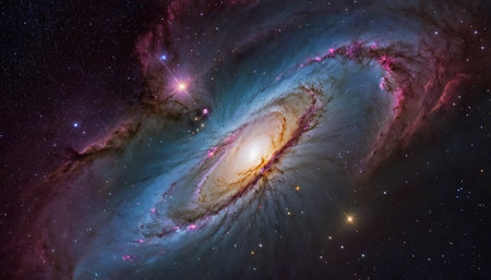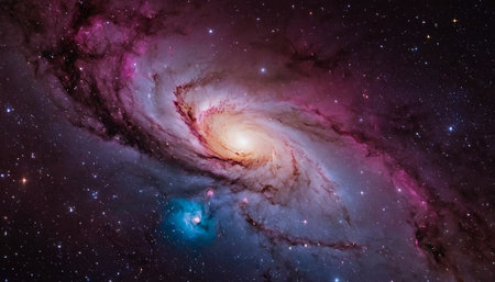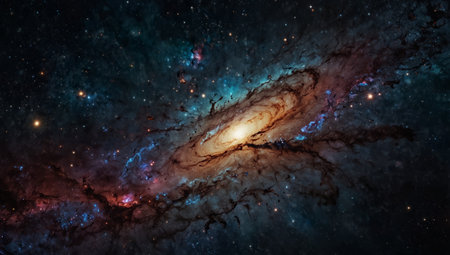 A breathtaking view of a spiral galaxy in deep space, filled with vibrant hues and distant stars.