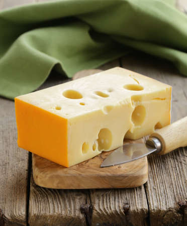 Dutch hard cheese Maasdam or Emmentaler, cheese with holes