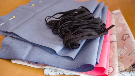 Sewing cotton face mask with a sewing machine for coronavirus outbreak.