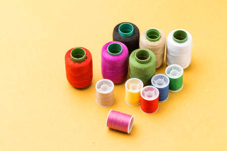 Thread rolls, Group of colorful thread on sewing desk, Craft, sewing and needlework concept.