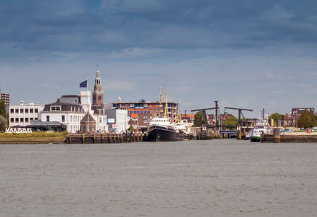 DORDRECHT, NETHERLANDS - OCTOBER 2016: View over the Maas river in Dordrecht, Netherlands with restaurants on the riverside