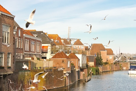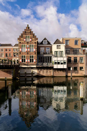 Dordrecht city - typical facade and buildings with waterways - Netherlands - Holland