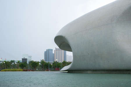 The Light and Shadow Nautilus art structure outside The Ring Shopping Mall in Chongqing, China. It is a large, spiraling metal structure designed to resemble a nautilus shell