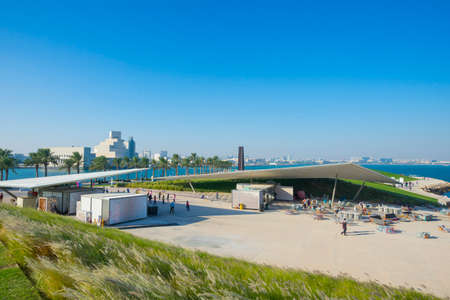 Doha, Qatar- December 12,2021 : view of 974 stadium from sea.stadium build with containers.