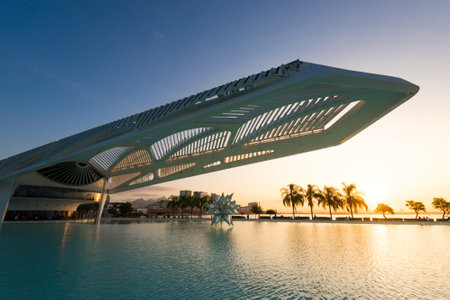 Rio de Janeiro, Brazil - July 14, 2022: The Museum of Tomorrow, a science museum in Rio de Janeiro. Designed by Spanish architect Santiago Calatrava and built next to Pier Maua.