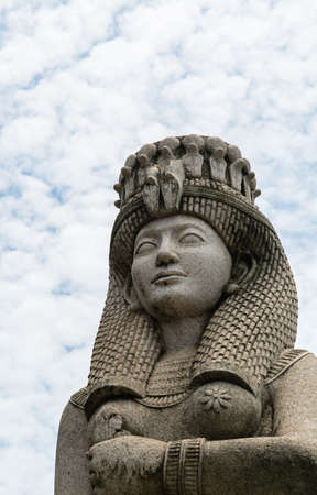Egypt style sculpture in the cloudy sky background