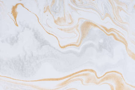 Abstract acrylic paint background. Marbling artwork texture. Agate ripple pattern. Gold powder.