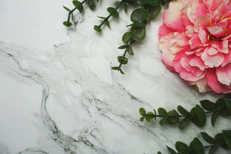 Flowers Border Frame with space copy on marble background