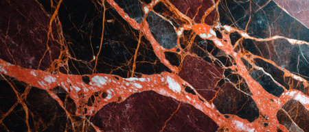 Close-up view of Rosso Levanto marble surface featuring vibrant mineral veins and detailed stone texture. Ideal for backgrounds, interior design, and material reference.
