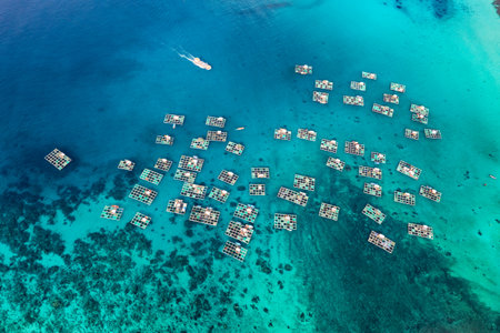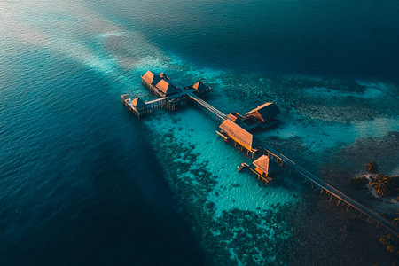 Generative AI : Aerial view of abandoned fish laboratory on Meti Island Indonesia