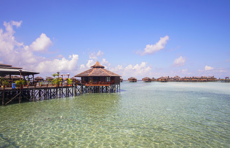 Beautiful hotel resort with water bungalows at Mabul Island - Borneo, Malaysia