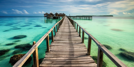 Wooden jetty that juts out into paradise turquoise waters. Generative AI