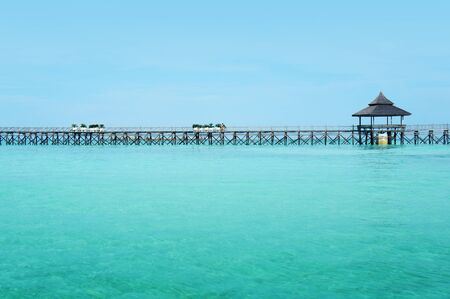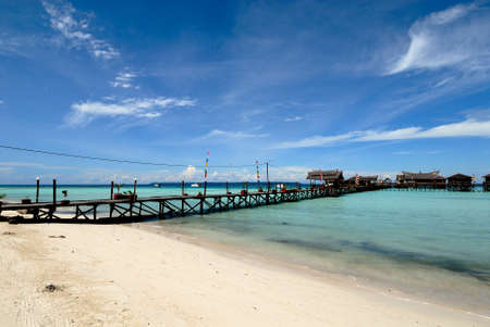 Long pier dan beautiful coral at Mabul Island.