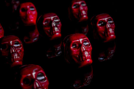 Skull Halloween Background Many People Skulls Stand on top of each other. Mystic creepy concept. Abstract nightmare occult memorial.