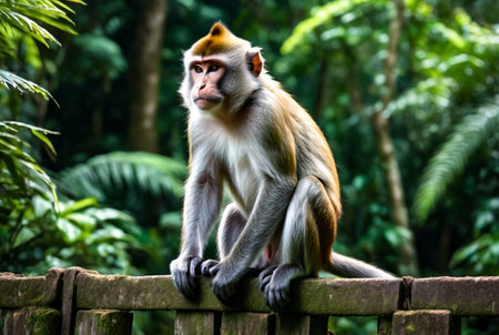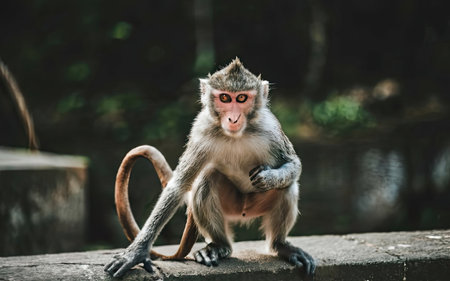 Monkey sitting on a wall in Ubud Monkey Forest, Bali, Indonesia