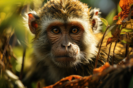 Alfa monkey leads group in search for food in the jungle., generative AI