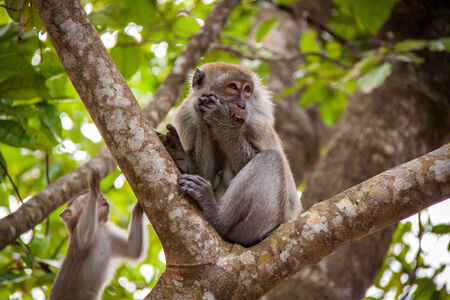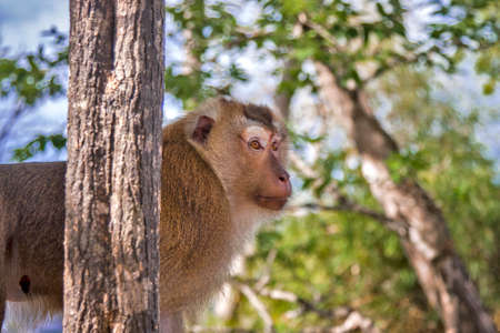 Monkey on the tree in the forest. (Macaca fascicularis)
