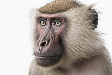 Close up of Baboon with white background very high quality. Generative AI AIG16