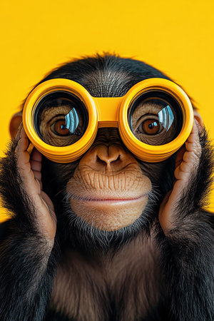 Stylish monkey in sunglasses posing with yellow blooms. Perfect for quirky and fun designs!
