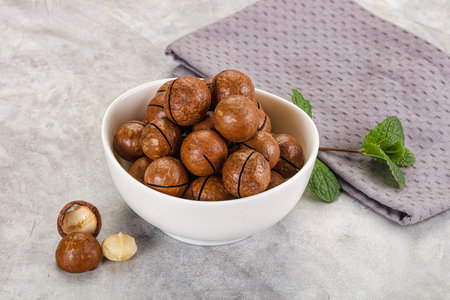 Sweet macadamia nut heap in the bowl