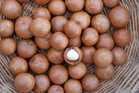 Macadamia nuts in basket.
